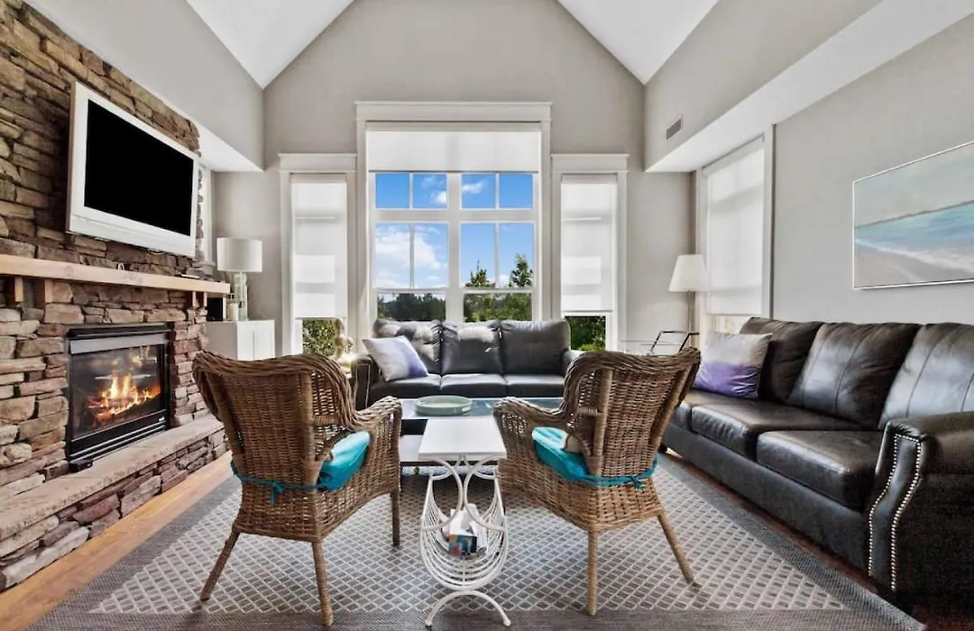 Deluxe Rivergrass Getaway 88386 ligger 20 minutters gang fra Scandinave Spa at Blue Mountain og 10 minutters gang fra Blue Mountain. Beliggende i Blue Mountain Ski område, har villa 3 værelser og indeholder et udstyret tekøkkenområde med et køleskab og køkkenudstyr.
